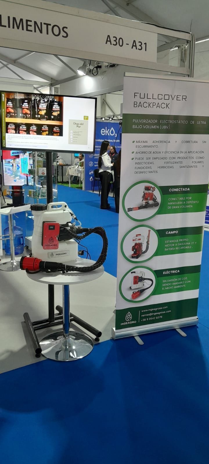 In questa edizione, Ingeagro SA ha partecipato insieme a CREAS (Centro regionale per gli studi sull'alimentazione e la salute), presentando la nostra tecnologia di sanificazione. FULLCOVER Backpack Eléctrica, un sistema diseñado para maximizar la eficiencia en la aplicación de sanitizantes y elevar los estándares operacionales en distintas áreas productivas. La solución despertó alto interés por su versatilidad, seguridad y capacidad de cobertura uniforme.